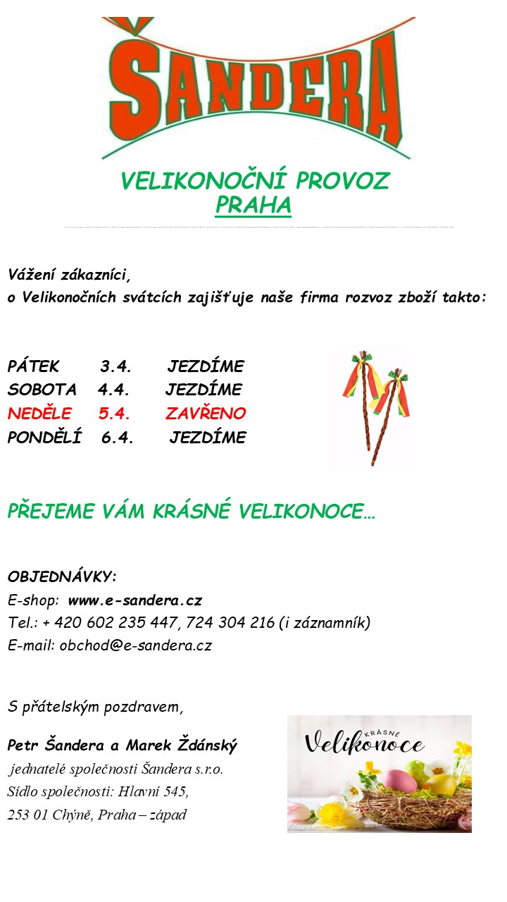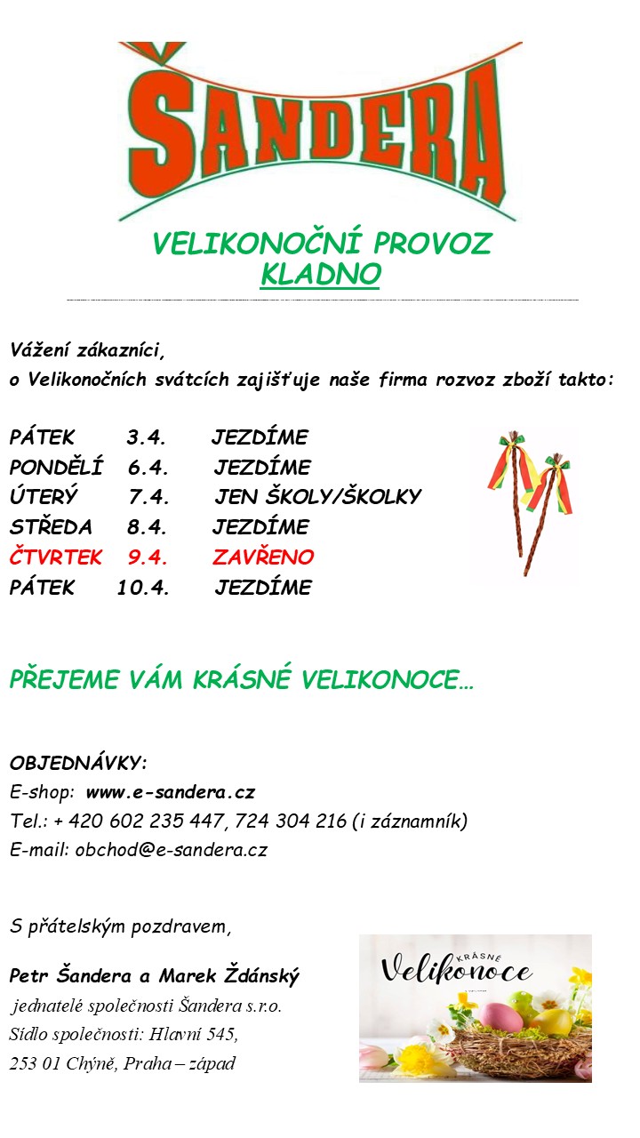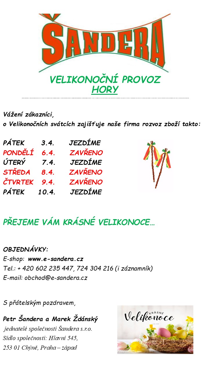 VELIKONOČNÍ PROVOZ: